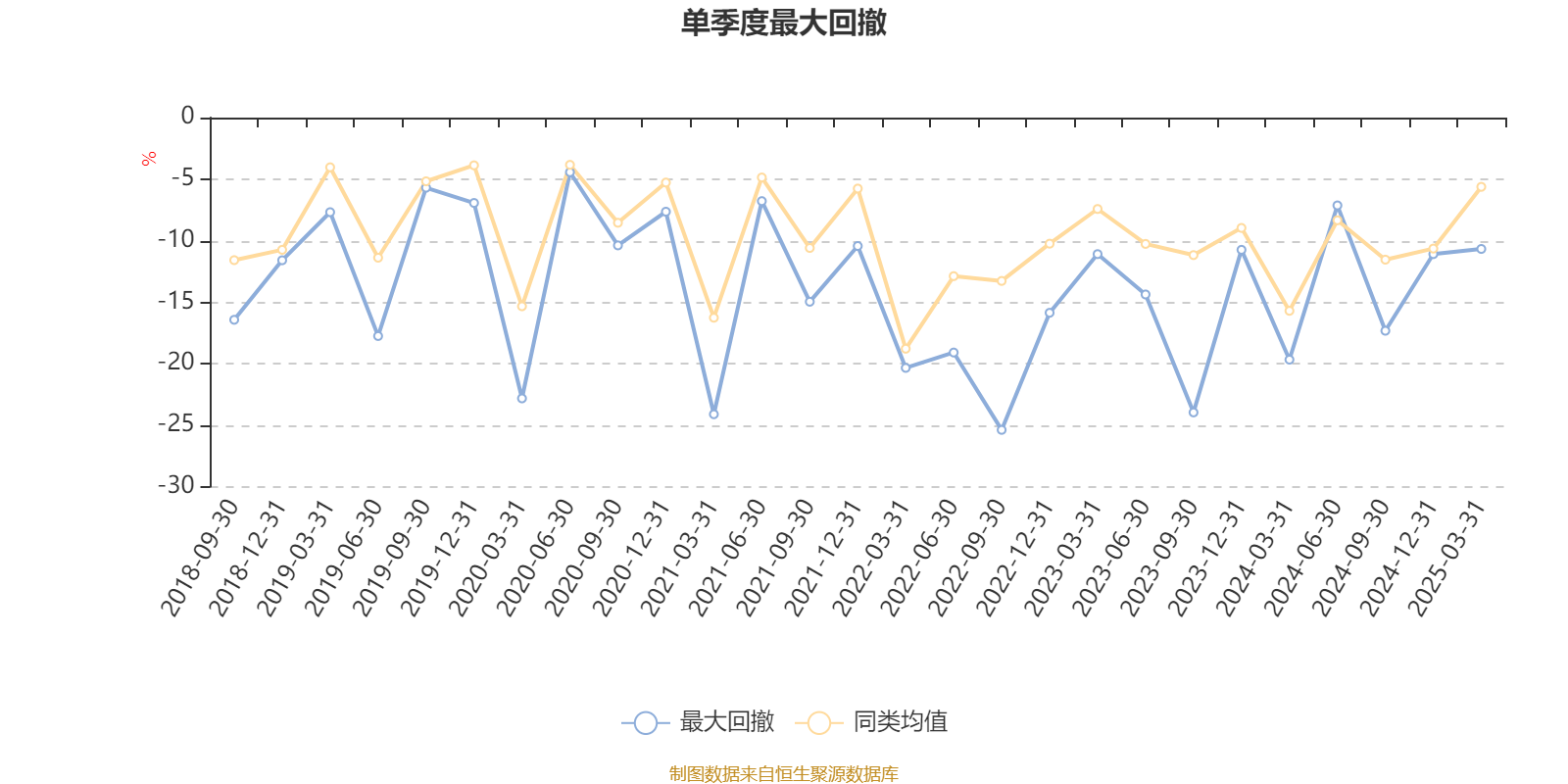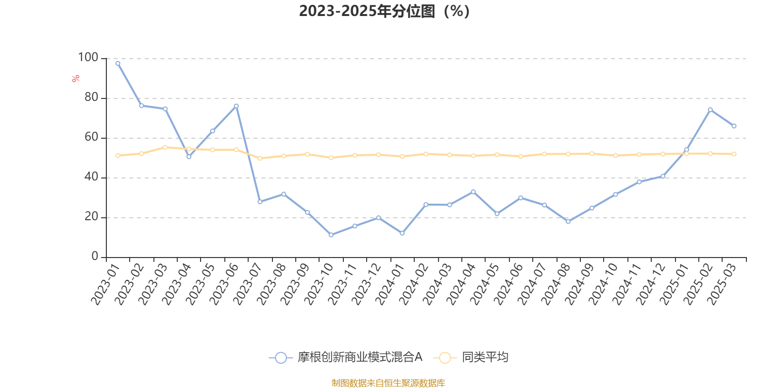 通过所选区间该基金净值增长率分位图,可以观察该基金与同类基金业绩比较情况。图为坐标原点到区间内某时点的净值增长率在同类基金中的分位数。