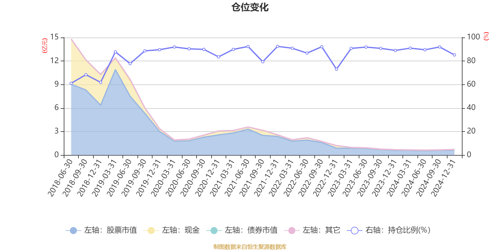 据定期报告数据统计,近三年平均股票仓位为88.57%,同类平均为79.88%。2021年末基金达到92.46%的最高仓位,2018年上半年末最低,为61.11%。